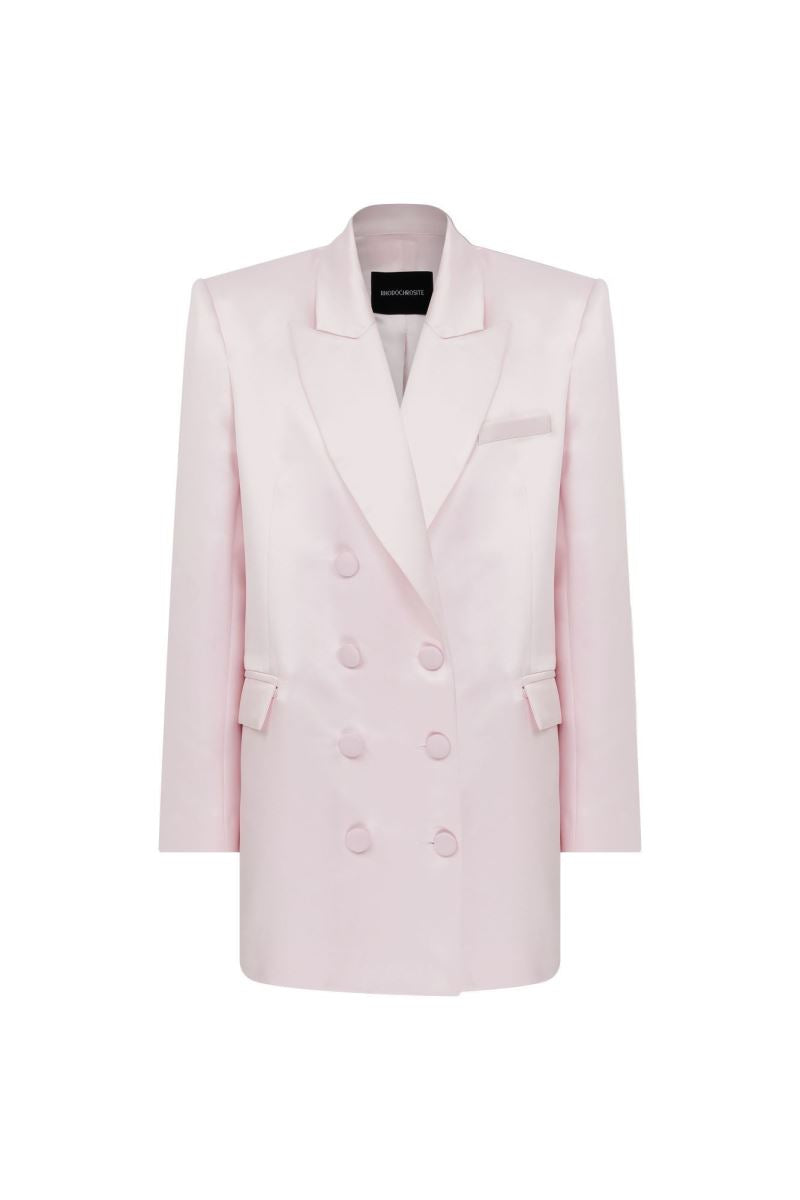 - Kruvaze Yaka, Çift Sıra Düğme Kapatmalı, Omuzlarda Vatka Detaylı Blazer.