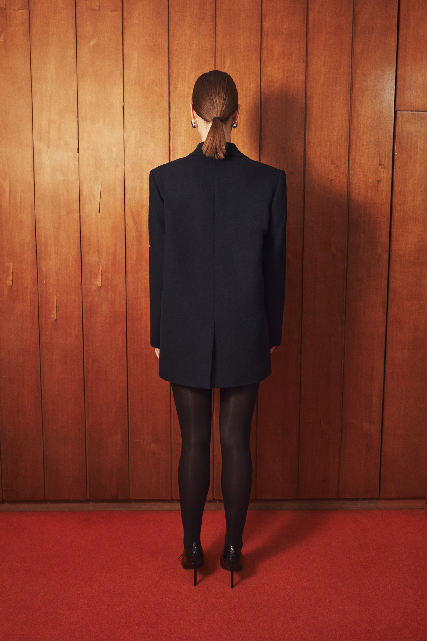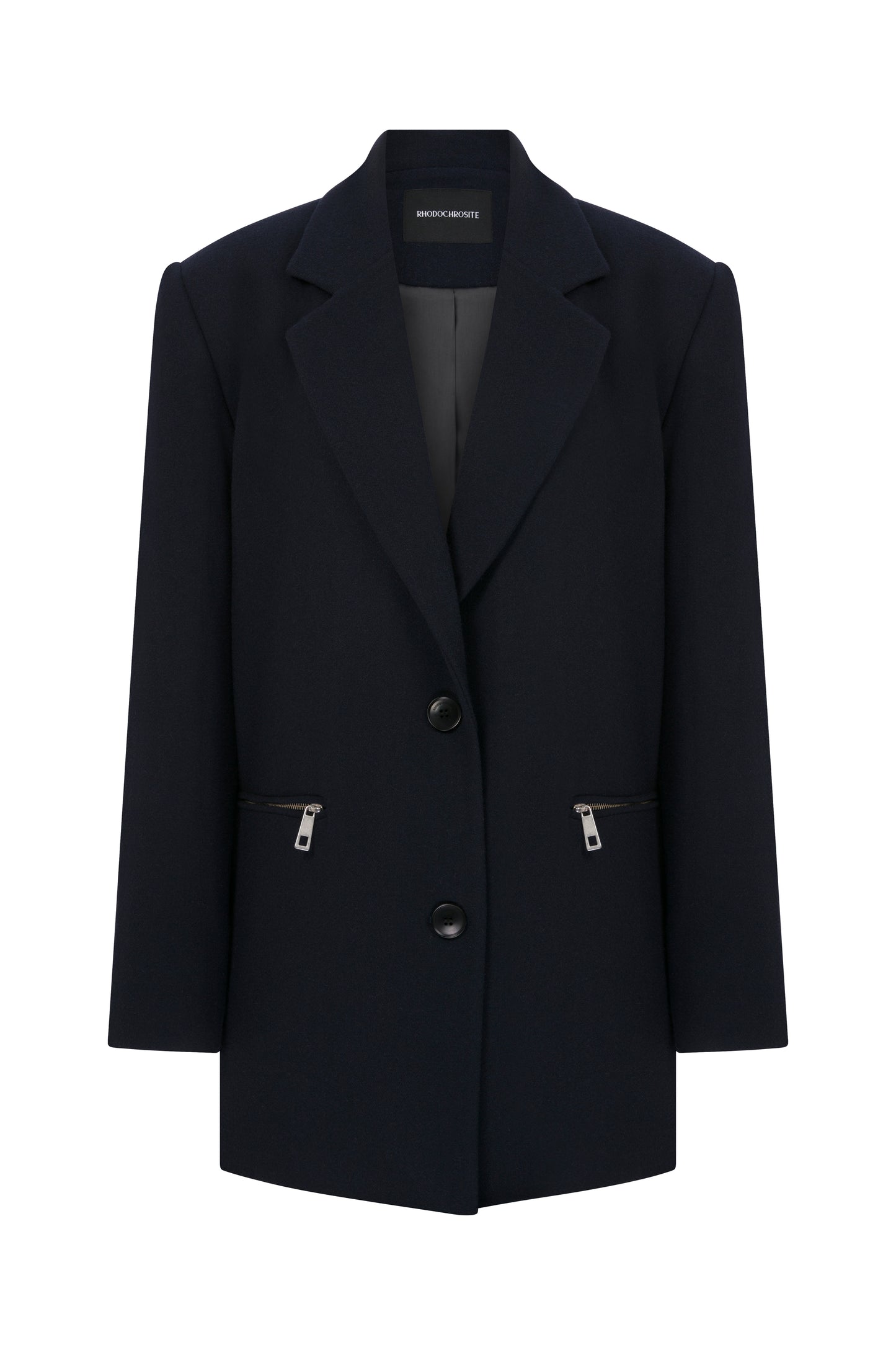 - Omuzlarda vatka, fleto cep detaylı blazer.