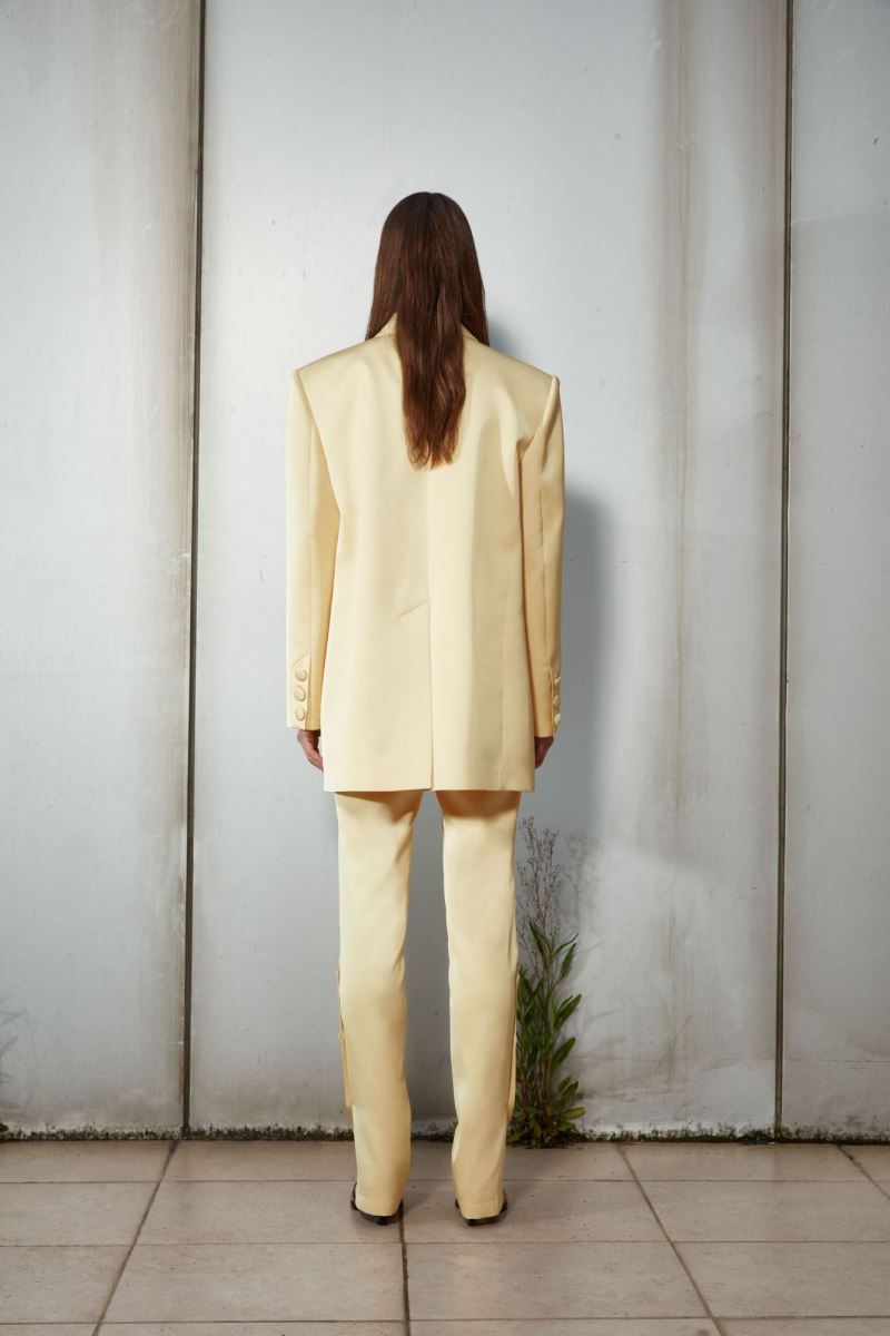 - Kruvaze yaka, çift sıra düğme kapatmalı, omuzlarda vatka detaylı blazer.