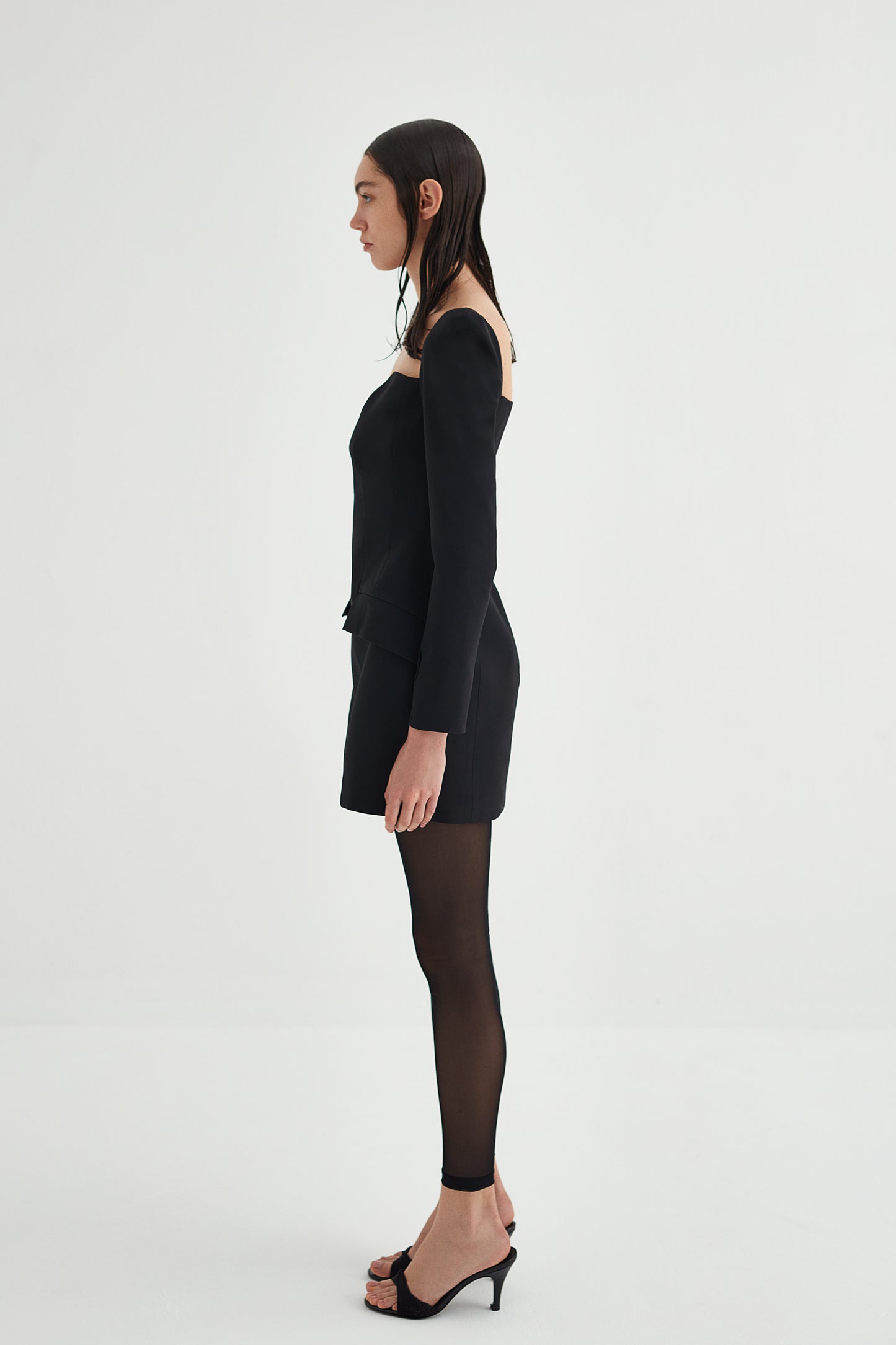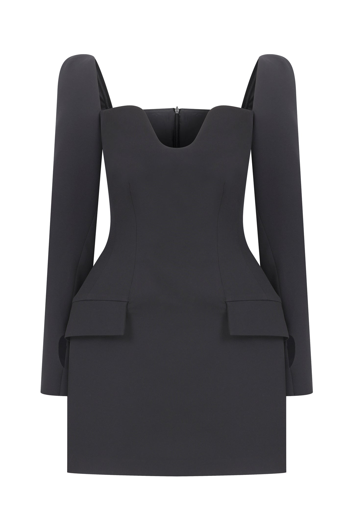 - Uzun kollu, mini kum saati elbise.