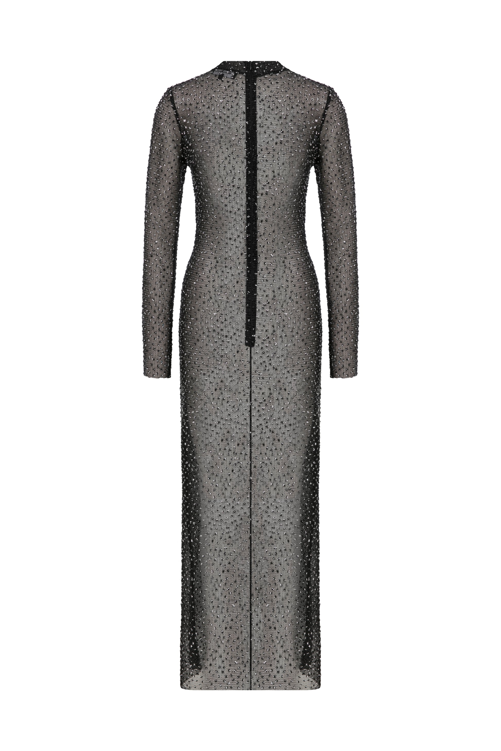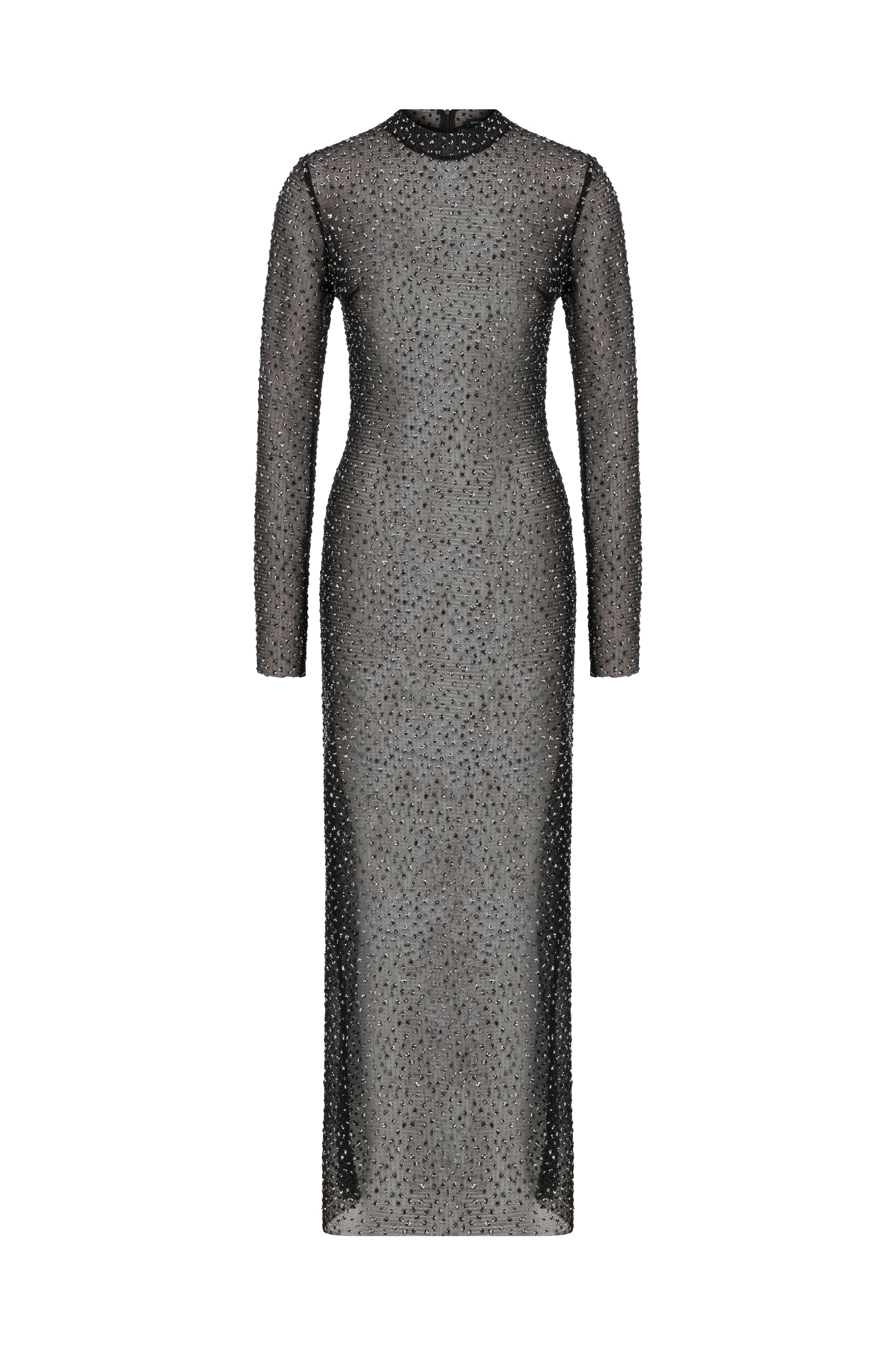 Konik taşlı, transparan düz dar elbise.