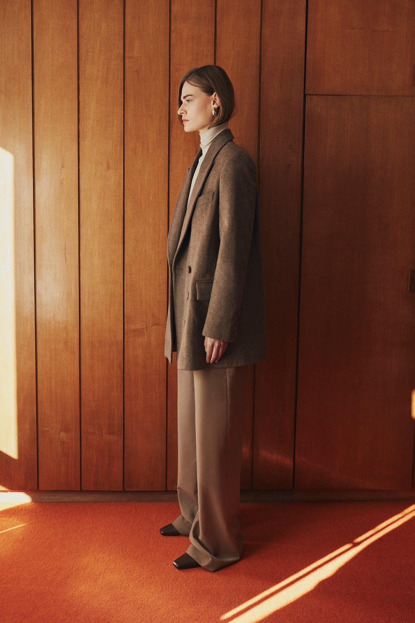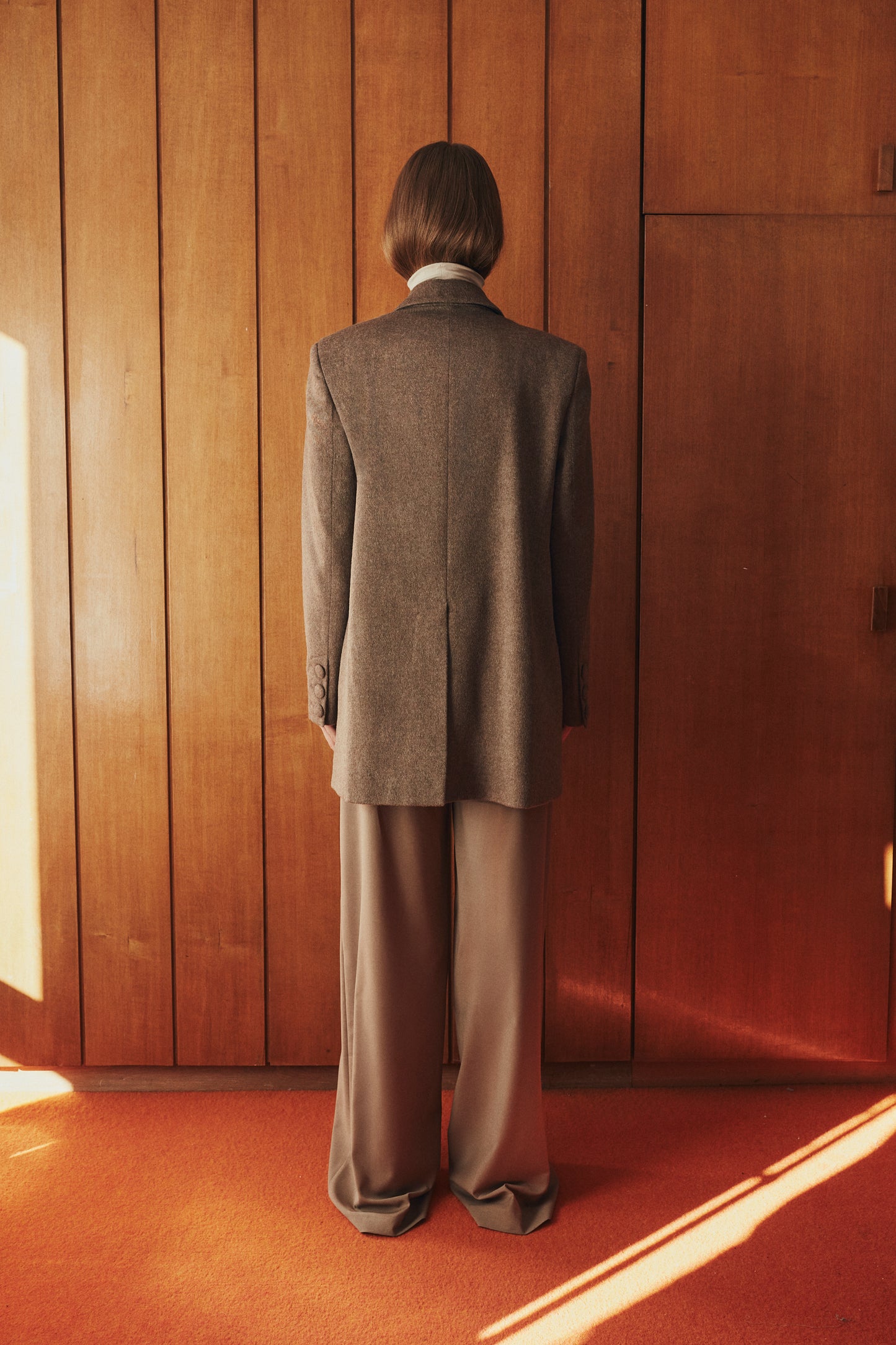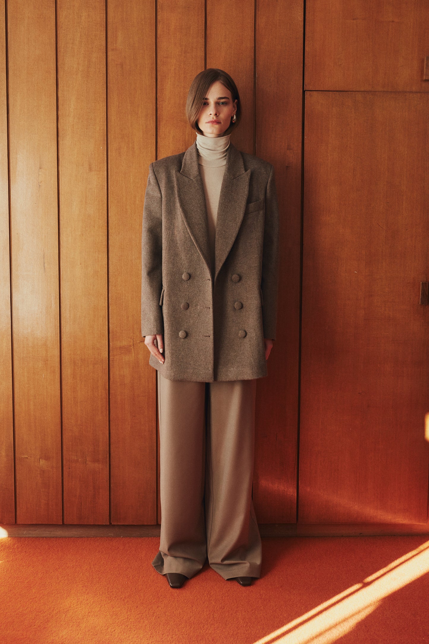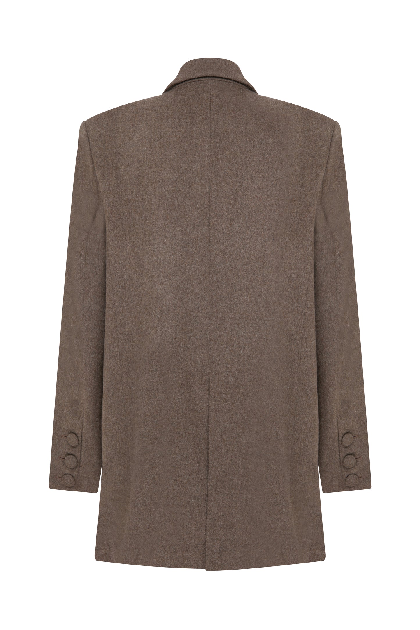 - Kruvaze yaka, çift sıra düğme kapatmalı, omuzlarda vatka detaylı blazer.